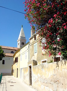 丘の間に細く切れ込んだ静かな入江を取り囲んで斜面に家々がぎっしり建て込んでいるので、坂の町でもある。街中を彷徨っていると、思いがけず美しい光景に出くわすことが出来る。 町の背後のウムピリャック山(Umpiliak)へトレッキングしてみると、町を眼下に納め、高く聳えるオソルシュチッツァ山地までロシーニ島全体を見渡すことが出来る[写真4j枚目]。 リゾート地だけあって、クロアチアとしてはホテルやレストランのレベルは高く、日本からの普通の旅行客にとっても過ごしやすく、アドリア海での旅とナチュラルライフの拠点としてお勧めしたい。