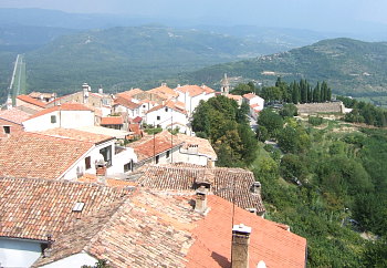ミルナ川の谷底から250Mの標高差を駆け上り、断崖に面した頑強な城門の有翼の獅子が掲げられた入口を潜ると、時が止まったように静かなモトヴンの村が、中世の風合いを保っている。かつての盟主ヴェネチアのシンボルが、町のそこここに残っている。