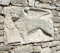 アドリア海航路の拠点として東方貿易を担った町だが、狭い水路が災いし、中世のヴェネチア領時代にはすでに役目を終えていた。城門脇に埋めこまれた小さく寂しげな有翼の獅子が、勢力を失った当時の町の証人として残っている。