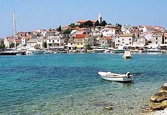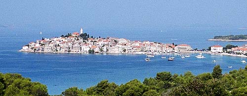 島並が絶えないダルマチアで、シベニックとスプリットの間の50キロ程度の間、大陸が直接アドリア海に接する部分がある。そこにある直径わずか数百メートルほどの円形の小島状の町がプリモシュテンだ。