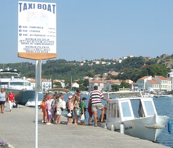 海上タクシーは、バスとタクシーの中間のような存在で、決まった停留所の間を決まった料金で航行しているが、時刻表はなく、客の入りを見ながら船長の判断で随時出航する。沿岸のホテルやアパートから町に行くのに大変重宝する。