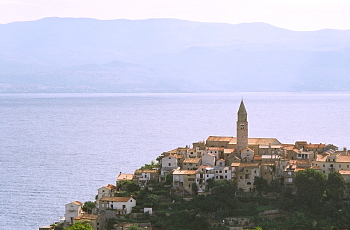 クルック島のほとんどの町は、航海に便利な湾に面した西側に発達したが、このヴルブニクだけは大陸に面した東側の海に落ちこむ岩山の上に築かれた、用心深い町だ。