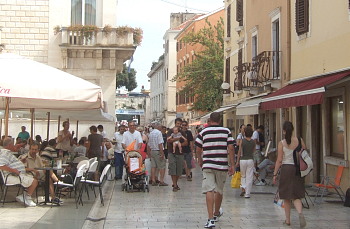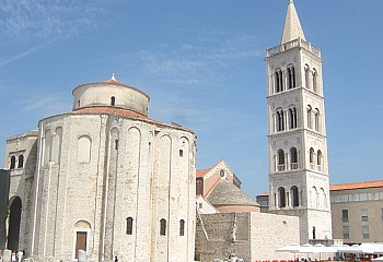 都市の起源は、2世紀にローマ帝国が先住民を蹴散らしてここに植民地を建設したことに始まる。その後歴史の波に翻弄され支配者が幾度となく入れ替わったが、ザダルはダルマチアで最も長く濃いイタリア都市としての歴史を持っている。イタリアが最後にこの地を去ったのは1944年のことであり、これが町がイタリアらしさを残しているゆえんだ。 ローマ時代のフォーラムは今でも町の中心広場として賑わっている。それを囲む、聖ドナート(Sv.Donat)、聖ストシヤ(Sv.Stoija)、聖マリヤ(Sv.Marija)の各教会は、それぞれクロアチア、ローマ、ヴェネチアの様式を踏襲しており、どれも劣らず貴重な建物だ。特に聖ドナート教会は、クロアチア王国時代に作られたこれだけ大規模なものとしては珍しい建物で、古代ローマの石柱を借用して立てているのが見ていて面白い。 |