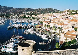 背後の山地に住むコルシカ人の攻撃から身を守るため、ジェノヴァ人が築いた要塞が海に突き出た岩山の上に聳え立っており、それを見上げるように海岸沿いに町が広がっている。要塞に抱かれた入り江はヨットハーバーなっており、その海岸に沿ってシーフードレストランが軒を連ねる。また海岸の一本内側を走る小径のクレマンソ通り(Rue Clemenceau)は夏の夜ともなれば、レストランやブティックの明かりが並び、肩を触れ合うほどの人出となる。迷宮を思わせる、典型的な地中海リゾートだ。