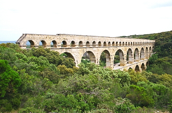 内へ水を供給していたローマ時代の水道は、ユゼス(Uzès)市付近を水源とする全長約50kmにおよぶ壮大なものだ。