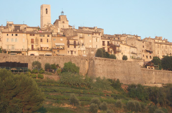 海岸から数キロ奥まった丘の上の小村で、周囲を取り囲む緑の森の向こうに地中海の青が良く映える。