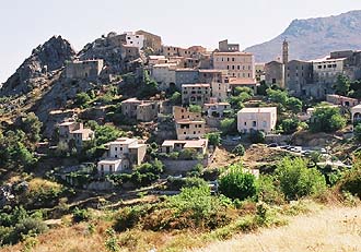 ラーニュの白茶けた山腹に点在するコルシカ人の村々。その中でも大岩の上に築かれた人口300の小さな村、スペロンカートは周囲から見ても堂々たる見栄えがする村だ。 美しい鐘楼のある18世紀のサン・ミッシェル教会が村の小さな広場に面して立ち、石を敷いた細い歩道が村中に張り巡らされている。石積みで作られた小さな家々は山村の風情が満点だ。岩の頂きに登ると地中海が大きく広がる。