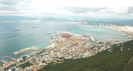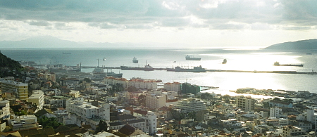 ジブラルタルの市街地はザ・ロック西側の僅かな平地に長細く伸びている。