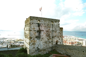 スペインに近い北側の城壁上には、イスラム時代の城跡があり、一番高いハミッジの塔(Tower of Homage)も素晴らしいビューポイントだ。港と町とを間近に見下ろし、さらに大陸とジブラルタルとを繋ぐ縊れた地形に作られた空港と、その滑走路を横切ってスペインへと続く道路、そしてスペインの町まで一望のもとだ。