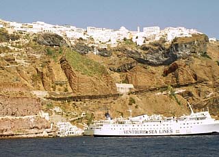 シー・ビュー(海の見える)の部屋を希望するなら、ホテル選びは念入りに行いたい。この町の崖沿いの絶景地帯は、個人の別荘か、営業用のレストランなどで占められており、ホテルは極めて少ない。シーズン中は、よほど前もって長期宿泊の予約を入れるのでなければ、取れないだろう。 フィラと同じ地形にある隣町のフィロステファニ(Firostefáni/Φηροστεφάνι)、さらにその隣のイメロヴィグリ(Imerovígli/Ημεροβίγλι)あたりであれば、若干の可能性があるかもしれない。その場合も、法外な部屋代を覚悟しておいたほうが良いだろう。