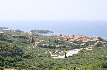 アテネからペロポネソス半島南部へと伸びる高速道路は、オリーブで有名なカラマタ近郊で終わる。ここからメッシニア湾に沿って南下する海岸線には、ギリシア人たちに人気の手ごろなビーチリゾートが並んでいる。風光明媚な山海に、素朴な中世の小村が、彩りを添える。