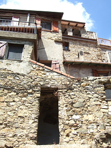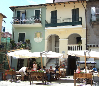 東西に延びる細長い尾根の上に乗った集落に、道は東側から入っていく。車が普通に通れる道幅は、村の入口にあたる地区教会前の小さな広場で終わる。 ここには、村でたった2軒の食堂があり("Ristorante Armonia"と"Osteria Ra Culeta")、どちらも素朴な山の料理を食べさせてくれる。 |