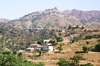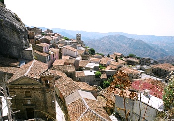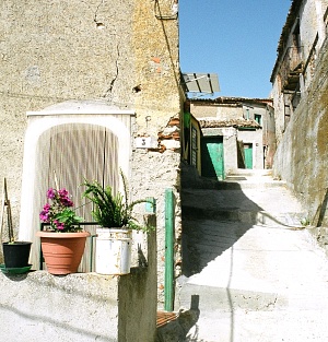 延々と続くボーヴァへの長いアプローチ。カラブリア州でも一番寂しいアスプロモンテ山地の南側の海岸。小さなボーヴァ・マリーナから山に向かう道を取る。海岸沿いですら小さい町しかないのだが、さらに曲がりくねった細い車道を山間部へと進んでいく。家一つない、潅木や草に覆われた乾いた山肌を、ゆっくり運転して十数分で、見上げる山の山頂付近に密集した家々が姿をあらわす。あまりの唐突さに目を疑ってしまうが、これがまぎれもなくボーヴァだ。まさに隠れ里そのものだ。