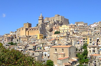 テルミニ・イメレーゼ(Términi Imerese)から山道を登ること約10キロ、岩の大地の上から谷を見下ろすカッカモの壮麗な城が姿をあらわす。