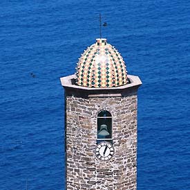 細い路地を上り詰めると頂上のカステロ(城)に出る。今は博物館になっているが、かつてはここから敵船の襲撃を見張っていたのであろう、240度が海に囲まれたその眺望は見事であり、テラスから眺める海の蒼さは何にも例え難いものだ。眼下に西の入江のビーチが広がり、カテドラルの緑と黄色を交互に配した鐘楼のクーポラが海に映えて美しい。