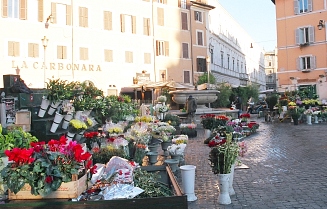 朝市がたつカンポ・ディ・フィオーリは、花でいっぱいになる