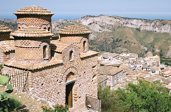 イオニア海に面した、岩山下の斜面の古い町スティーロは、ドゥオーモを中心に山腹に広がる、中世の家並みを伝える町だ。