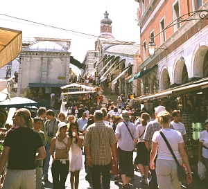 タリア各地を旅してきたなら、この町の全くイタリアらしからぬ雰囲気に驚くであろう。建物を飾るエキゾチックな装飾、耳慣れぬヴェネト語、そして背が高く青い目のゴンドリエ(ゴンドラの漕ぎ手)たち。それはこの国の歴史抜きには語れない。ヴェネチアは約200年前まで、ヴェネチア共和国の首都であった。そしてこの国の領土は、現在のクロアチア、ユーゴスラビア、ギリシア、キプロスへと広がっていた。まさに東地中海ないしは中東の国の首都であったのだ。だからヴェネチアは、この街について1冊の本ができてしまうくらいの見所とエピソードに満ちている。