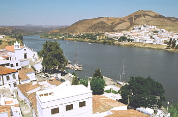 国境をなす、幅僅か200メートルのグアディアナ川を挟んで、ポルトガルのアルコウティムからスペインまで渡し舟で渡ることができる。