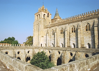 古代ローマのディアナ神殿[写真上]、13世紀のエヴォラ大聖堂[写真下]、アラブの要素が混在するサゥン・ブラシュ聖堂(Capela de São Bras)、中世の水道橋アグア・デ・ラプラタ送水路など、数え上げてもきりがないほどだ。