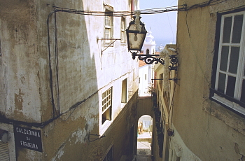 ルファマ(Alfama)は、海のように広く青いテージュ川を眼前にして城の足元に広がる、リシュボアの旧市街で、震災をくぐり抜けた唯一の地区だ。白壁の家々を縫うように走る狭い坂道となった路地に、咲き誇る花や水の青さが彩りを添える。