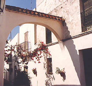 ルコス(Arcos)、それはスペイン語でアーチを意味する。実際に白い町の小路にかかるアーチは数知れぬほどだが、実はその名はラテン語のarxarcis(絶対的な強さ)に由来している。ヘレスの東約30kmにあるこの白い町はグアダレーテ(Guadalete)川のほとりの切り立った崖の上の大地に細長く伸びており、最高地点には今はパラドールとして使われている旧代官屋敷がある。 --> Parador de Arcos de la Frontera (地中海生活 −Hotels 泊まってみたい地中海のホテル、ビラより)
