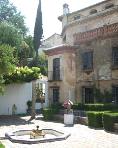 面白いのはアラブの王の宮殿(パラシオ・デル・レイ・モーロ、Palacio del Rey Moro)と呼ばれる18世紀の邸宅で[写真左]、渓谷の縁にある庭園の水や緑とモザイクは、小さなヘネラリフェ(アルハンブラ宮殿の離宮)のようだ。