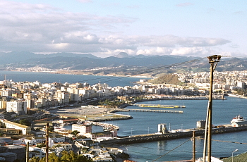 セウタへは、スペイン南端の港町アルヘシラスからフェリーで渡るのが一般的だ。 セウタへの渡航は出入国には当たらないが、海外自治領で税体系が異なることによる関税検査と、治安上の必要からパスポートチェックを要求される。 貨物港を兼ねたセウタの港は広大で、その一角にあるフェリーターミナルから市街地までは、タクシーに乗るには近い中途半端な距離だが、人気のない寂しい埠頭を十数分歩いていくのは不安かもしれない。