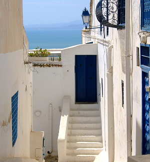シーディー・ブー・サヒード(以後、フランス語のでシディ・ブ・サイドで表記)はチュニスの北約20kmの、崖に囲まれながら海に突き出た岬の上にある、小さな美しい町だ。