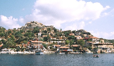 多 島海の、カシュからカレ(デムレ)にかけてのトルコ南西部のエーゲ海。島影の小さな岬の丘の上に、本当に小さな村、カレがある。15キロほど東にあるサンタクロースの墓所として有名なカレと同名であるが、それに対してこの村はカレキョイ(Kaleköy)すなわちカレ村とも呼ばれる。