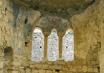 教会は5〜6世紀のバジリカをベースに原型が分からぬまでに再建・増築を繰り返されているが、荒廃の程度もひどく、整備が進められている。色褪せたフレスコ画やモザイクが往時を偲ばせる[写真1]。アギオス・ニコラオスの棺[写真2]には現在何も入っていない。その後、指など幾つかの骨の破片が残っているのが発見され、現在アンタルヤ博物館に保管されている。 |