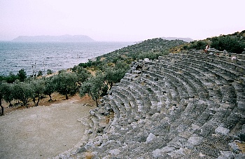 町は大陸からヒョロッと海に突き出した半島の付け根にあるのだが、やや半島側に進んだあたりに古代の劇場が残されている[写真4]。夏の夕方、風に当たりながら観客席でギリシアの島々が浮かぶ海を眺めながら過ごすのもよい。