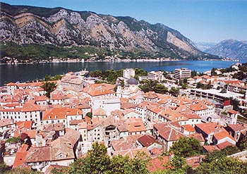 険しいフィヨルド地形のコトル湾にあるコトルの町 |