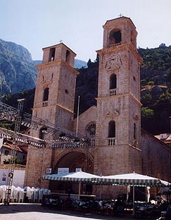 面を登っていくのが町からもはっきりと見える。この道は中世の謎めいた山岳国家ツルナゴーラ(モンテネグロ)主教国の首都ツェティニエへと続いている。この国は強大なトルコ帝国と数世紀にわたり戦いつづけた勇猛な宗教国家で、ヴェネチア支配下のコトルからの峻険な馬車道を、唯一の海への出口としていた。そのためヴェネチア人の話すヴェネト語の「モンテネグロ」が、国名として知れ渡った。宗教も異なる世俗国家のヴェネチアとは必ずしも仲がよかったわけではないが、強大なトルコ帝国に対抗する必要に迫られ共同戦線を組んでいたのである。このつづら折の道をほんの数分登っただけでも、十分それに値する眺望が得られる。このカッタロの梯子を唯一の路として外界と繋がっていた遥か彼方の山上都市ツェティニエを、今でもモンテネグロ人は心の故郷として慕っている。