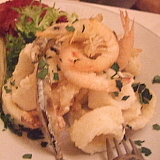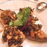 | 黒キャベツと白いんげん豆のブルスケッタ | マグロとサーモンのオイル漬け | エビ、ヤリイカ、わかさぎなどのフリット |