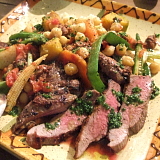 | 仔羊腿肉のローストとクスクス | イベリコ豚骨付き背肉の炭火焼 |