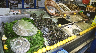 類の充実ぶりが特徴で、季節によってカキ、ムール貝、ツブ貝などが、食べきれないほどの量で出される。その新鮮さは間違いなく、パリのレストランとは比較にならない美味しさだ。ブイヤベースも伝統的な南仏のレシピそのもので、魚介類を丸のまま煮込んだ濃茶色の味の濃いスープだ。足の速い素材をふんだんに使い、美味しく仕上げた逸品は、新鮮さがなせる技といえる。
