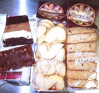 字型の銘菓ブラネッリはカリッとして歯ごたえのある素朴な食感と、グラニュ糖のコンビネーションにフルーツのフレーバーがさわやか。ハード系の菓子はカリッと、ソフト系の菓子はしっとりと仕上がっている。銘菓ザレットはもちろん、またチョコレート類も種類は豊富でどれもしっかりとした伝統的な味わい。1974年に開かれたこの店は、創業者ヴィオの熱意によって古いレシピを掘り起こし、ラベルにベネチア方言で刻まれた「古きベネチアの大食家」の名に恥じない名店となった。 |