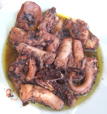 他にも手作りパスタのヒロピテス、新鮮な魚のグリルを初め、お勧め料理には事欠かない。 中世の数百年間の繁栄、住む人も疎らだった20世紀、そして観光都市として復興して賑わう今日の姿。変化に富んだ町の様子に比べ、テラスでぼんやりと眺めるモネンヴァシア沖の静かなミルトー海は、このレストランのレシピと共に、何もなかったかのように変わっていないのであろう。そんなことを思いながら、木漏れ日の下、よく冷えた地元産の白ワインを手にまどろむのも楽しい。 |