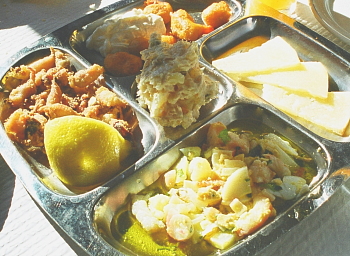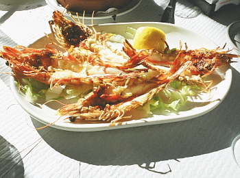 通しの、ピーマンやキノコと漬け込んだ緑のオリーブを抓みながら、メニューを開いてみると、さすが漁港の町だけあり、イカ、タコ、イワシ、マグロなど、ありとあらゆる新鮮な魚介類が、数多くそろっている。