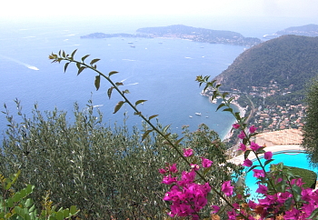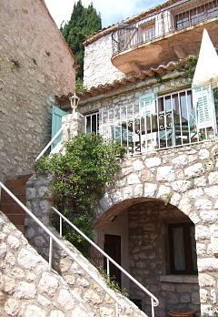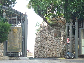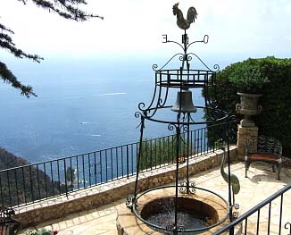 エズを訪れたバロコーヴッチが、金色の毛の山羊に導かれて進んで行くと、この建物に辿りついた、と伝えられている。かつて、このあたりの岩山では山羊が放牧されていた。実際、ホテル南面は山羊が遊ぶのにちょうど良い斜面になっている。南から逆光を浴びて金色に輝く、ヤギの神秘的な美しさに惹かれてついて行ったのだろう。