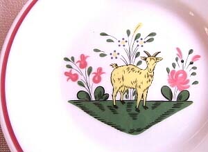 その一つに案内され、食前酒を手にくつろぐ。金の山羊が繊細なタッチで描かれたテーブルの上の飾り皿に期待が高まる。