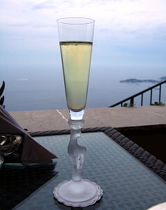 ディナーは、テラス・バーでのシャンパンで始まる
