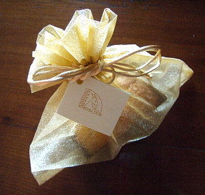 客室に戻ると、セッティングされたベッドの上には、金色の小箱が・・・。 中には、手作りのチョコレート菓子が入っていた。
