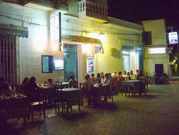 宿にレストランはないので夕食は外で食べる。大きな町なので食べるところには事欠かない。魚市場の食堂で魚を食べるのもよいが、200メートルほど北のアルジェリエ広場(Place d'Algérie)にあるレ・パルミエ(Les Palmiers)はお勧めだ。