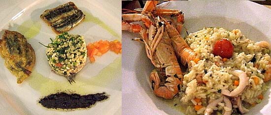 料理は日ごとに変わるプリフィクス方式の、ギリシアをモチーフにしたオリジナル地中海料理だ。グリルしたエビのサラダ、魚フライ・茹で魚のマリネの盛り合わせ、海の幸のリゾット、サーモンのグラタン風など、いずれも丁寧な盛り付けで目を楽しませた後、ギリシアらしいボリュームたっぷりでストレートな美味しさが口に広がる。