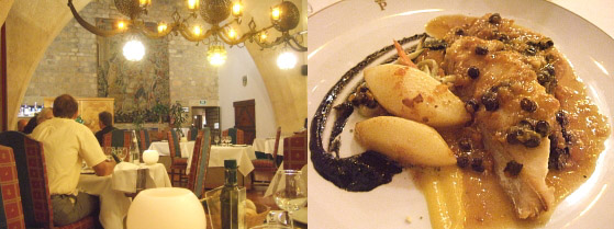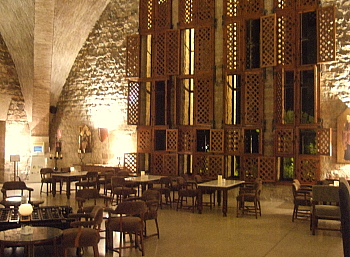 その先に、レンガをそのまま生かした中世風のレストランがある。 料理は、アンダルシアの要素を取り入れたものではあるが、最近の近隣のパラドールと重なる規格化されたメニューになっている。