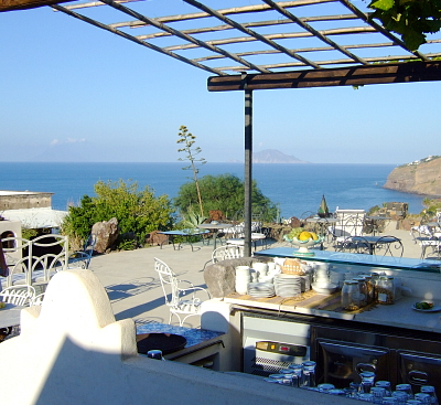 月明かりを頼りに部屋に戻り、夜の静けさの中に身をおく。天井のクラシックな扇風機の大きな羽が作り出す微かな風と共に、心地よい眠りに就く。 夏のサリーナ島には、スローライフを求めてヨーロッパ中から人が集まってくる。船やホテルのキャパシティーが限られているため大混雑は起こらないが、その分満室・満席などに遭遇しやすい。また費用も自ずから高くなる。ならばシーズンオフに行けばいいのではという考えもあるだろうが、この島の魅力は、海と太陽と大自然であることを忘れないで欲しい。この島を、そしてこのホテルでの生活を楽しむのなら、やはり夏をお勧めしたい。 |