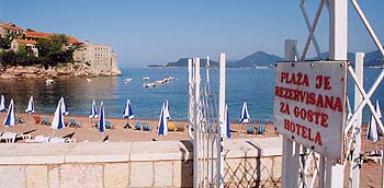 ドリア海を代表するリゾートホテルといえば、モンテネグロ(旧国名;ユーゴスラビア)のスヴェティ・ステファンをあげたい。陸地からぽつんと離れた小島全体がそのままホテルになっており、俳優のソフィア・ローレン、シルベスタ・スタローン、スキーのインゲマル・ステンマルクなど顧客名簿には欧米の著名人の名が並ぶ。