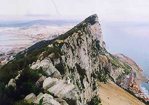 現在ジブラルタルはイギリスの一部(海外領土)となっています。独自通貨ジブラルタル・ポンドを持ちますが、英国ポンドと等価とされ、英国ポンドも流通しています。英語、スペイン語とも通じます。現在(2000年1月現在)国境に緊張間はほとんどないものの、スペイン側はあてつけがましく国境の都市を「仮想国境」市(リネア・デ・ラ・コンセプシオン市)と名づけています。 |